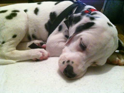 Heute habe ich Anne mal so richtig gezeigt, was ein Dalmatiner ist! Ich bin geflitzt so schnell ich konnte und habe es unterwegs sogar noch geschafft im vorbei rennen ein paar Sachen anzuknabbern. Auch Annes Hand, Ohrläppchen und Füße. Das ist schon eine reife Leistung, wenn man so schnell ist, wie ich... Anne fand das aber gar nicht beeindruckend und hat ganz erschrocken geguckt. Sie meint, ich habe einen Rappel gekriegt. Ich habe aber leider gar keinen Rappel gesehen. Vielleicht bekomme ich ihn ja beim nächsten Mal, wenn ich losflitze...